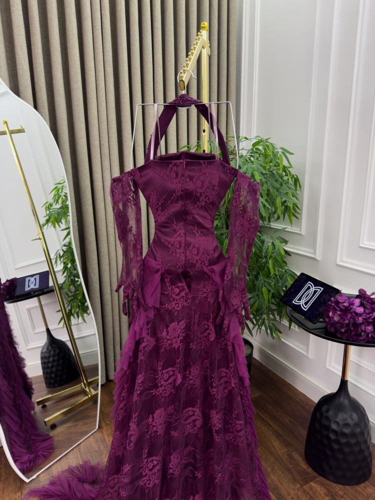 - اسم المنتج: فستان سهرة دانتيل تطريز يدوي
